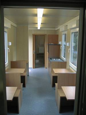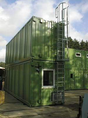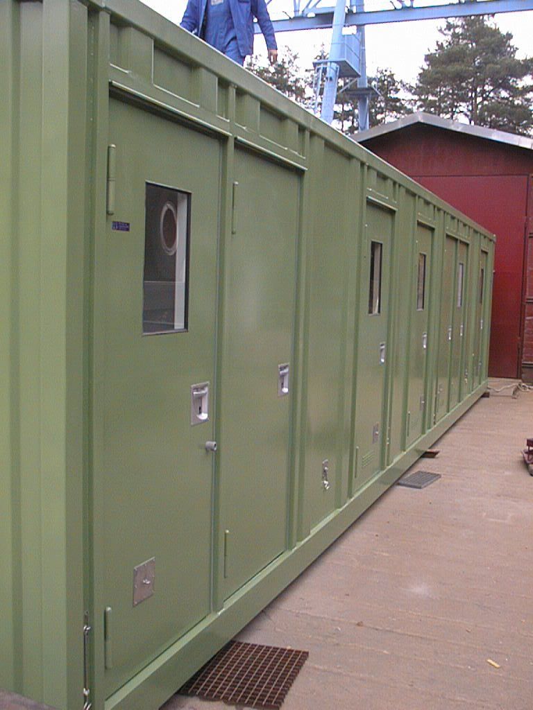 Robust ausgeführte, dichtgeschweißte, eigensteife Stahl-Container mit individuell ausstattbarer Innen-Einrichtung für z.B. Büro-, Labor-, Sanitär-, Spind- u. Lager-Container werden speziell, unter Berücksichtigung Ihrer Kundenwünsche, konstruiert und angefertigt. Bestimmte Ausstattungsmerkmale könnten sein z.B. Klimaanlage, autarke temporäre Eigenwasserversorgung (für z.B. Duschen, Toiletten, Waschbecken, etc.), Fäkalien-Zwischentanklagerung. Bedingt durch modulare Bauweise sind kurze Auf-/Abbauzeiten realisierbar.