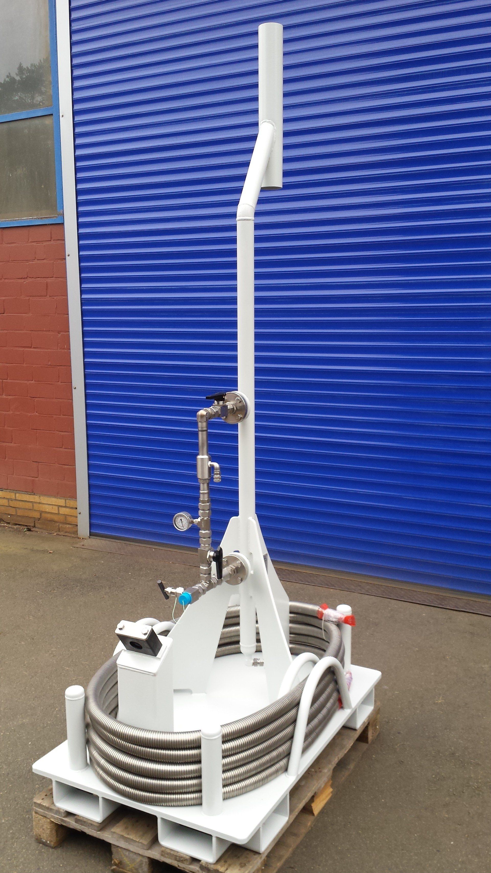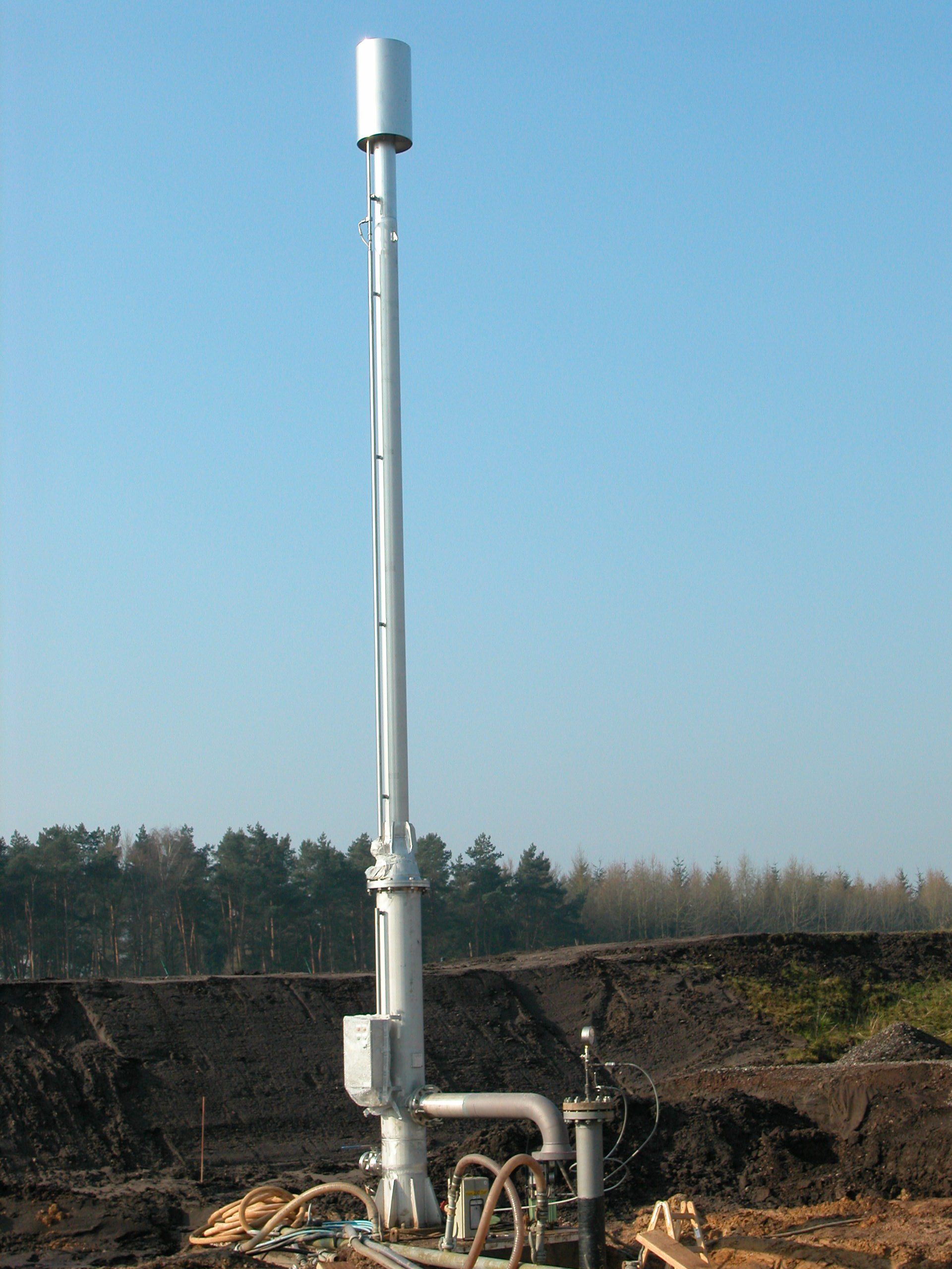 Jede Anlage wird hierbei den individuellen Feldgegebenheiten als freistehende oder seilabgespannte, in Materialgüte    C- oder CrNi- Stahl-Ausführung, mit integrierter oder externer Kondensat-Separation entsprechend ausgelegt und designed.